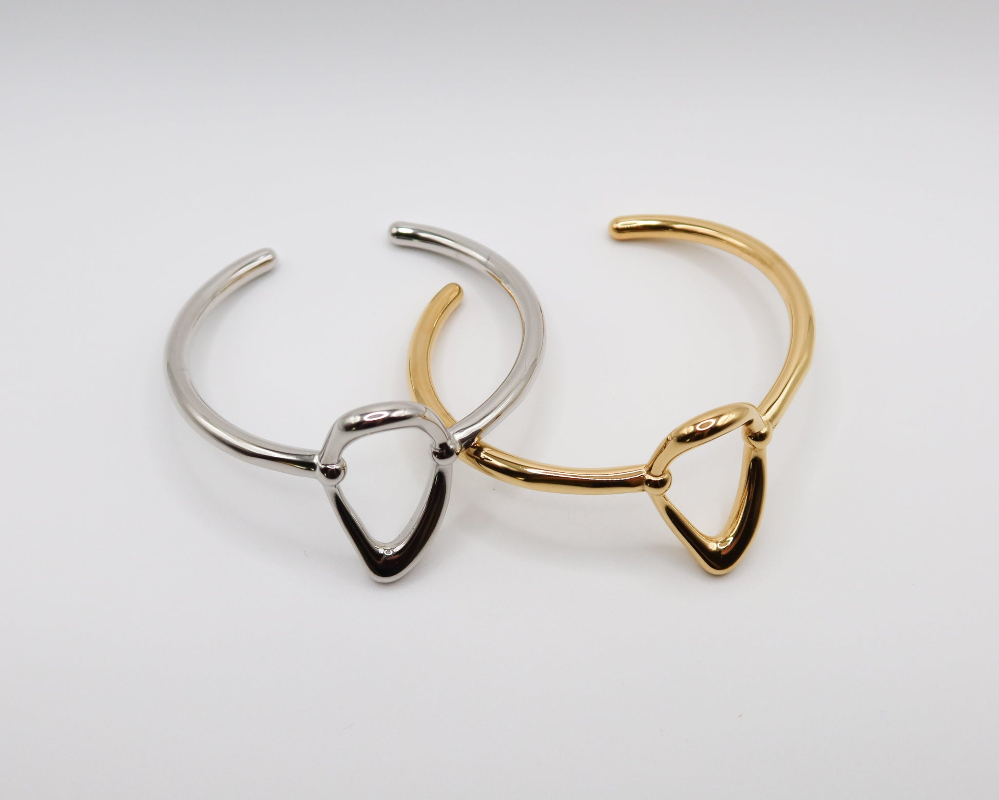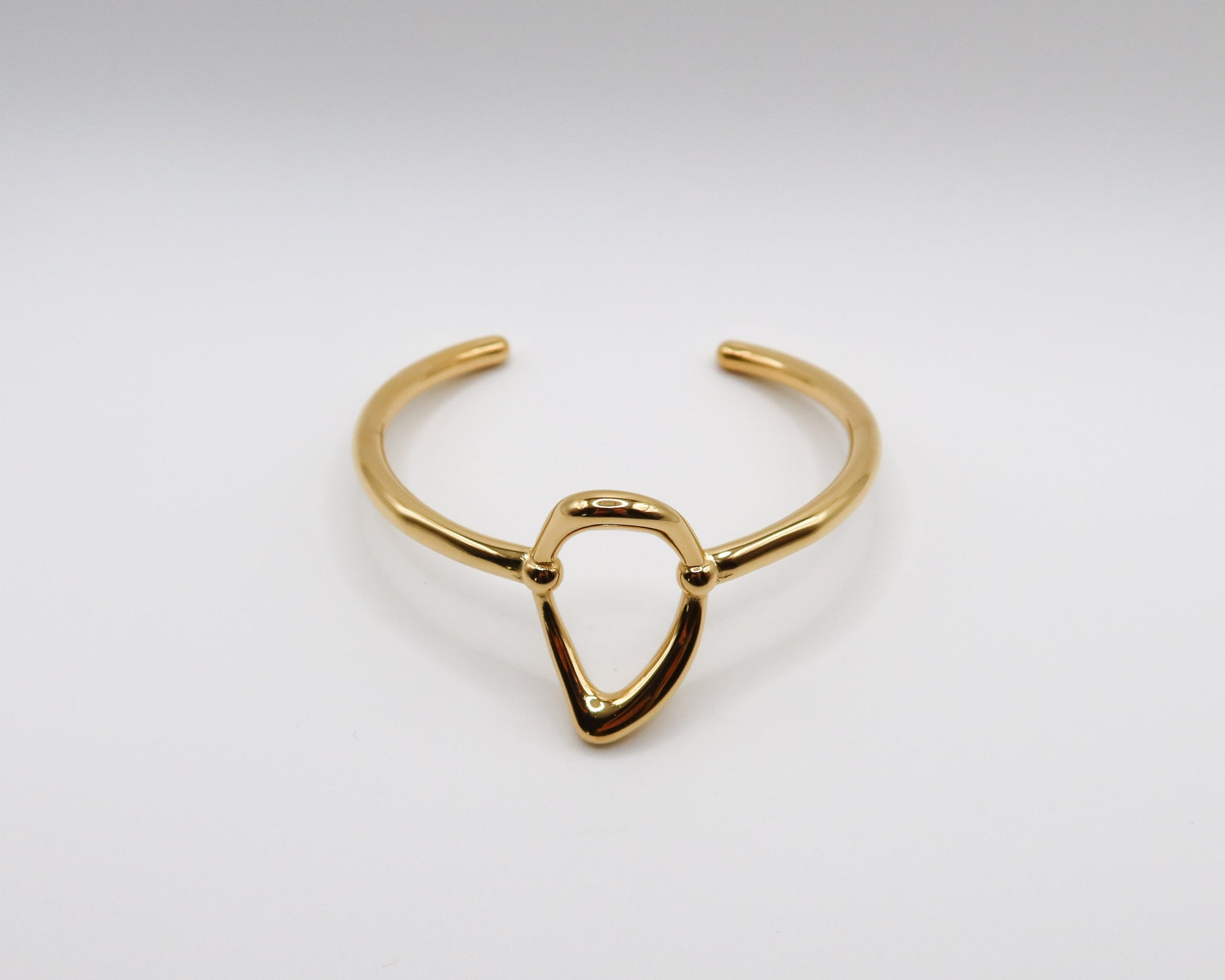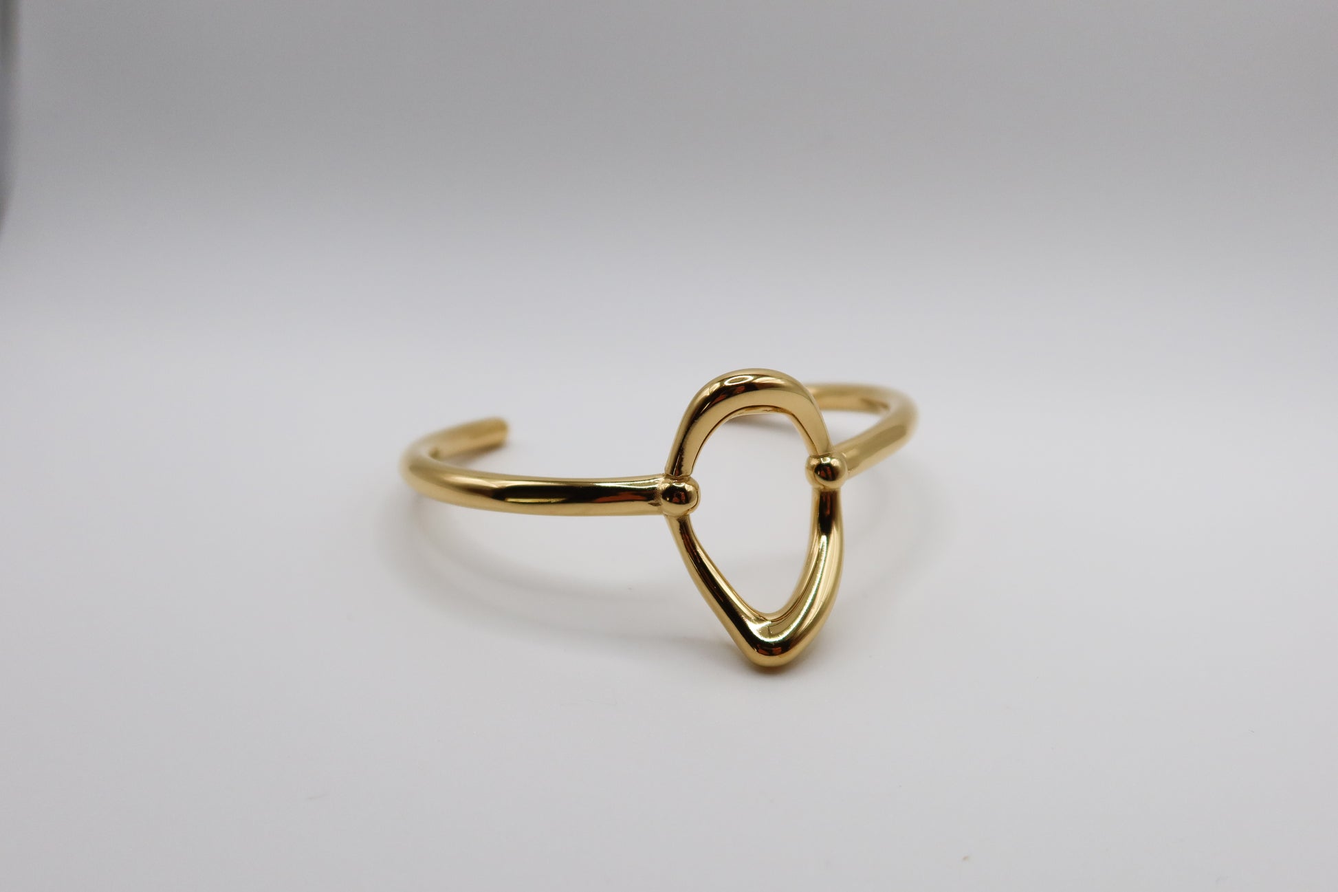 Romantic and refined, the Amoura Bangle is designed with hollow, circular details that symbolize unity and flow. Adjustable for a perfect fit, it’s crafted from stainless steel with an 18K gold finish that resists tarnishing, making it a timeless keepsake for daily wear.