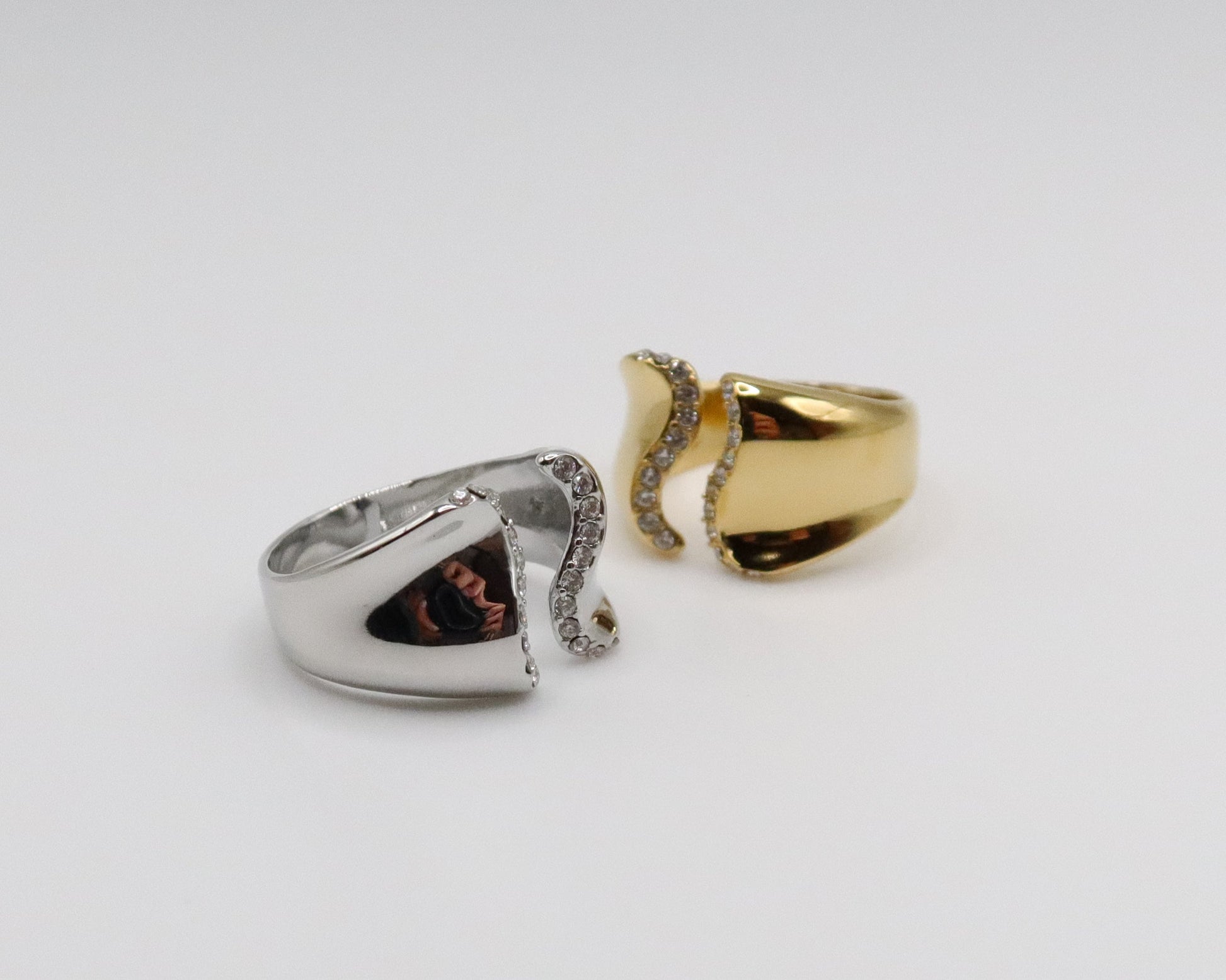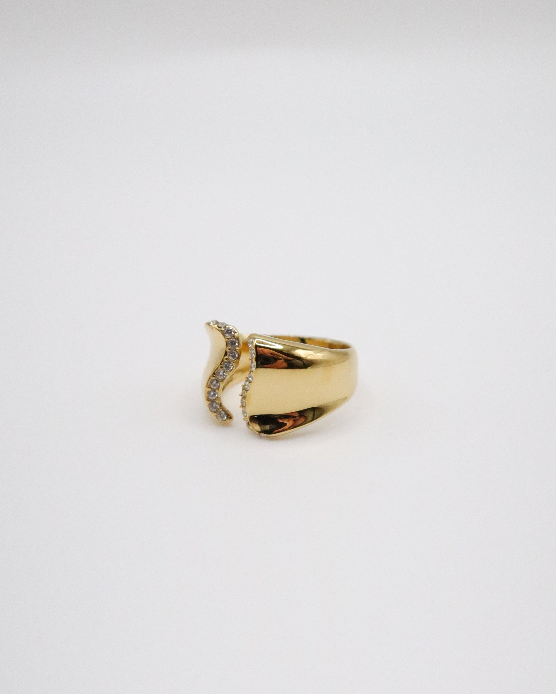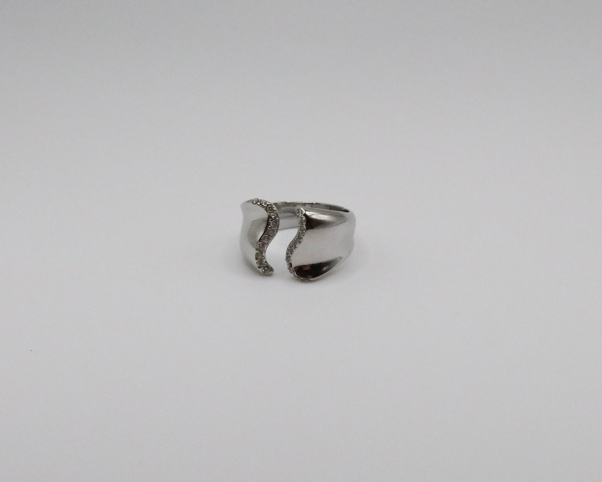 A curved pavé ring with a soft, luminous edge.